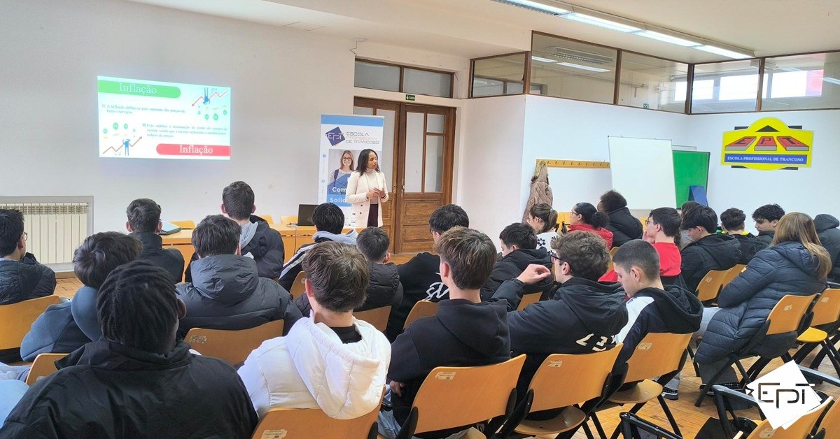No dia 16 de janeiro, a manhã foi dedicada a um tema que acompanha os jovens muito para além da escola: como gerir o dinheiro e fazer escolhas financeiras conscientes. A atividade decorreu no âmbito da Componente de Cidadania e Desenvolvimento, subordinada ao tema da Literacia Financeira, e foi dirigida às turmas do 10.º ano.