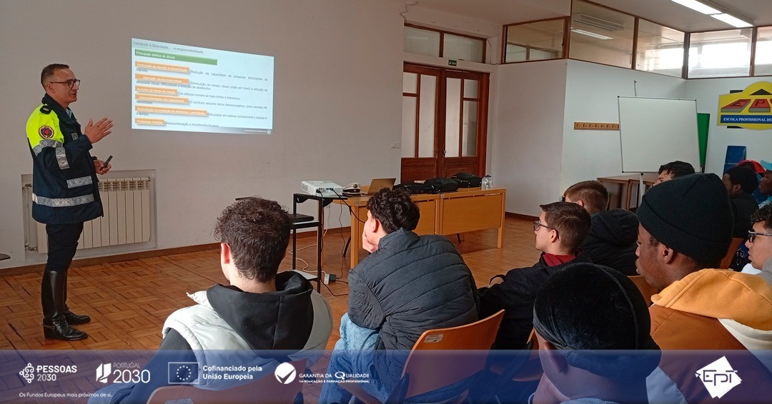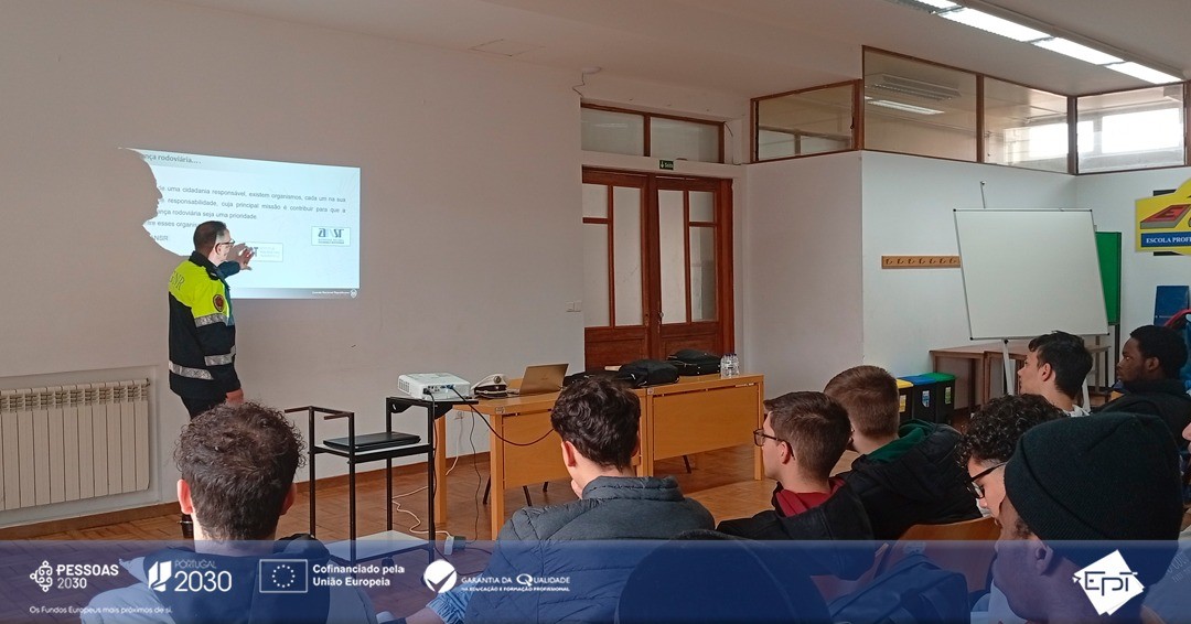 No dia 14 de abril, os alunos do 11.º ano participaram numa ação de sensibilização dedicada à segurança rodoviária, no âmbito da componente de Cidadania e Desenvolvimento, promovida pela EPT em parceria com os Bombeiros Voluntários de Trancoso e com a colaboração da Guarda Nacional Republicana.