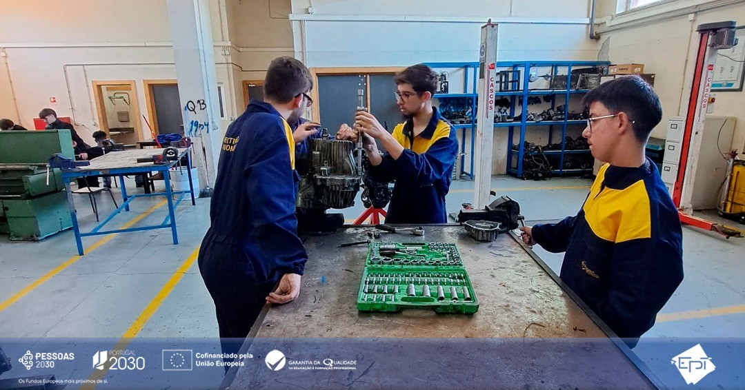 Sob a orientação do Eng.º Joaquim Cabral, os alunos desenvolvem competências técnicas essenciais para o mundo automóvel.