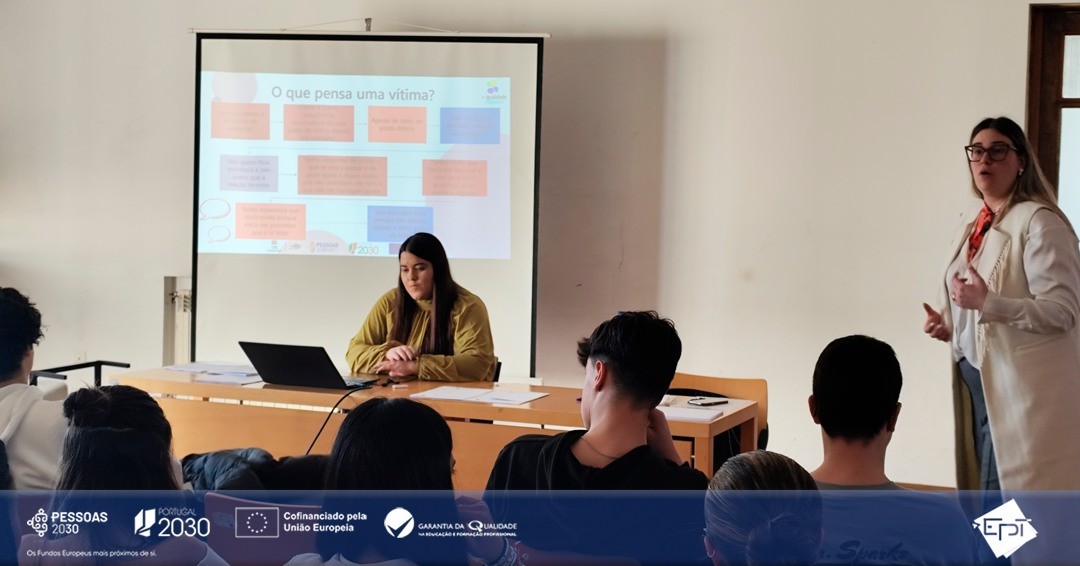 A iniciativa foi dinamizada pela equipa do Projeto (+) Igualdade (-) Violência (CFAD), que promoveu um espaço de diálogo aberto e esclarecedor sobre relações saudáveis, respeito mútuo, sinais de alerta e estratégias de prevenção.
