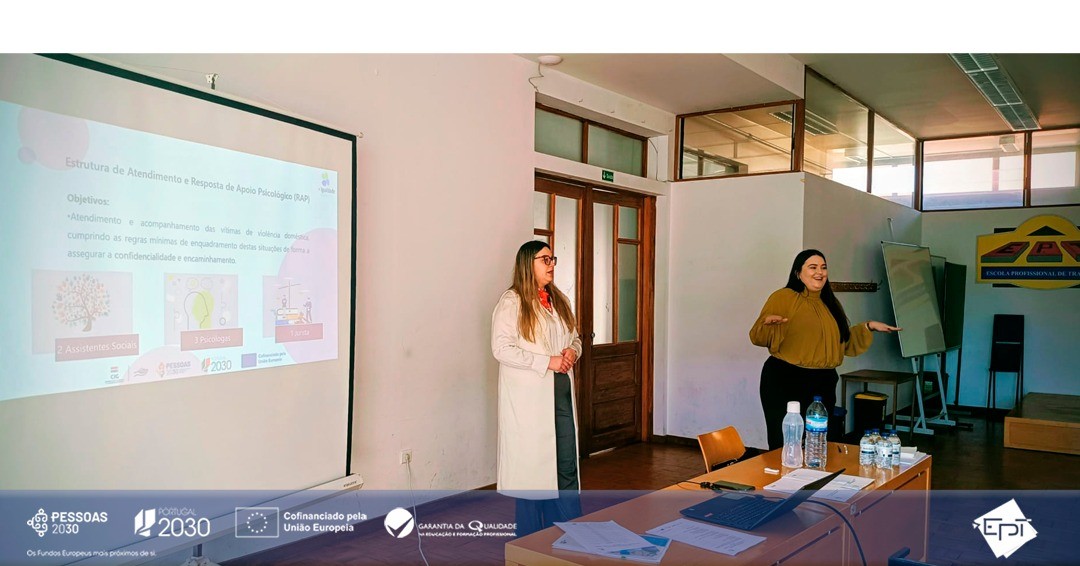 realizaram-se duas sessões de sensibilização sobre Violência no Namoro, dirigidas às turmas do 10.º ano, durante a tarde, no Auditório Padre José Cabral da Escola Profissional de Trancoso.