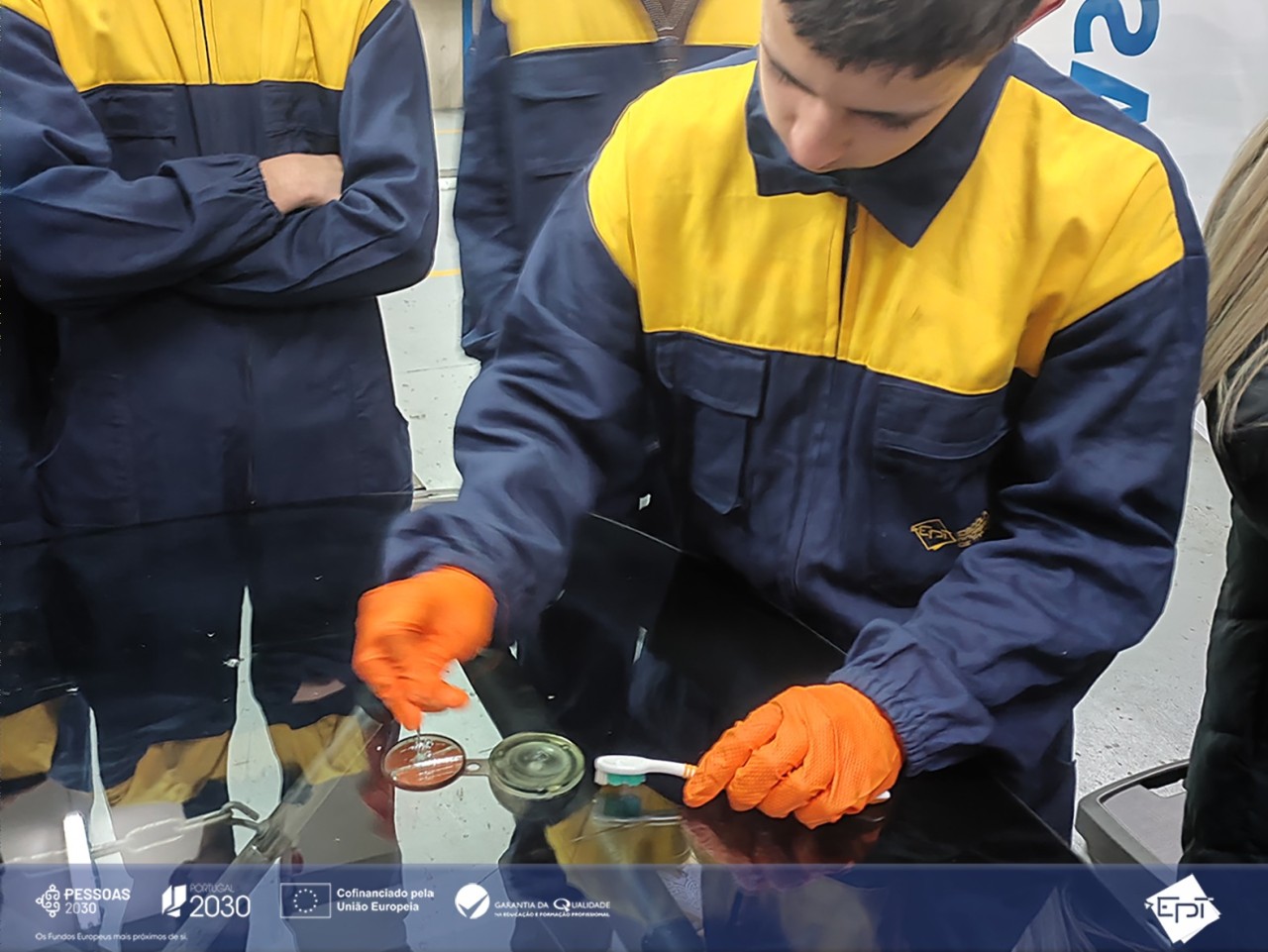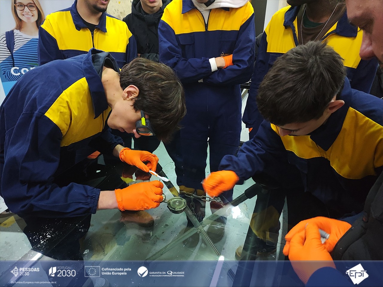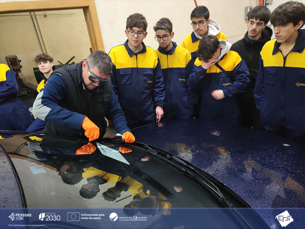 Os alunos do 10.º ano de Mecatrónica Automóvel meteram literalmente as mãos no vidro numa atividade técnica realizada na oficina de mecânica da escola, promovida pela GlassDrive e orientada pelo Diretor de Curso, Eng.º Paulo Aquino.